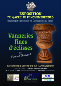 - Vanneries fines d’éclissepar Bernard BennavalDu 4 Avril au 1er Novembre 2026 Bernard Bennaval est né en 1956 dans le loraguais région d’Occitanie et vie maintenant dans le Berry. Ses parents étaient sabotiers, il découvre la vannerie avec son grand père a l’age de 7 ans, il réalisera son premier panier en osier rond. Adolescent il part apprendre… Read more: Vanneries fines d’éclisse